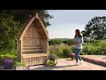 Please note that roofs and storage spaces are weather resistant and not guaranteed to be watertight unless otherwise stated. Roofs are also not weight bearing. This arbour should be positioned on solid, level ground.