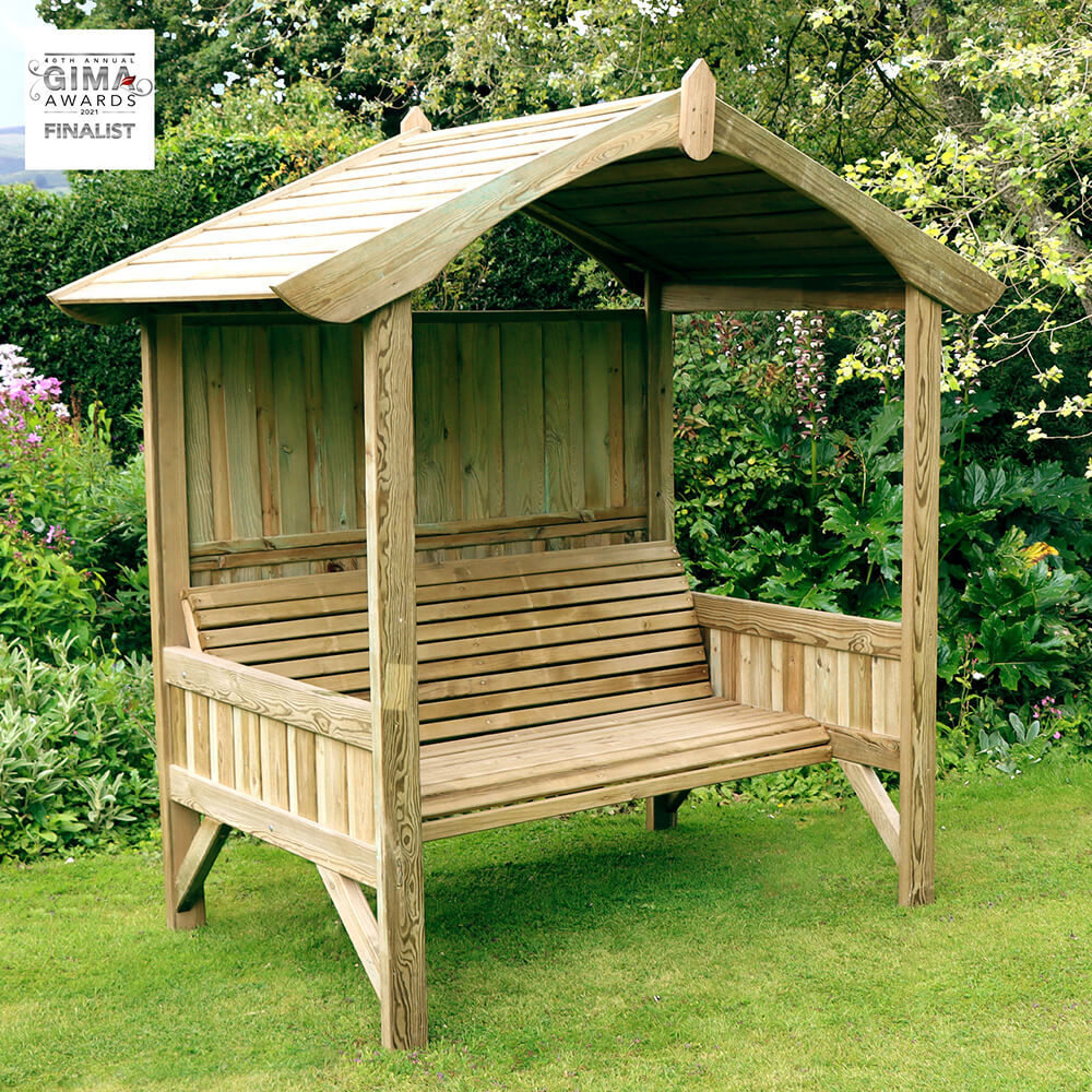 Available with or without back panels (an optional extra), it’s ideal for framing a seating area. The split front rail and precision-cut rafters enhance both strength and aesthetic appeal, while optional back wall timbers (sold separately) can be configured with 30mm spacing for a semi-enclosed, modern feel.